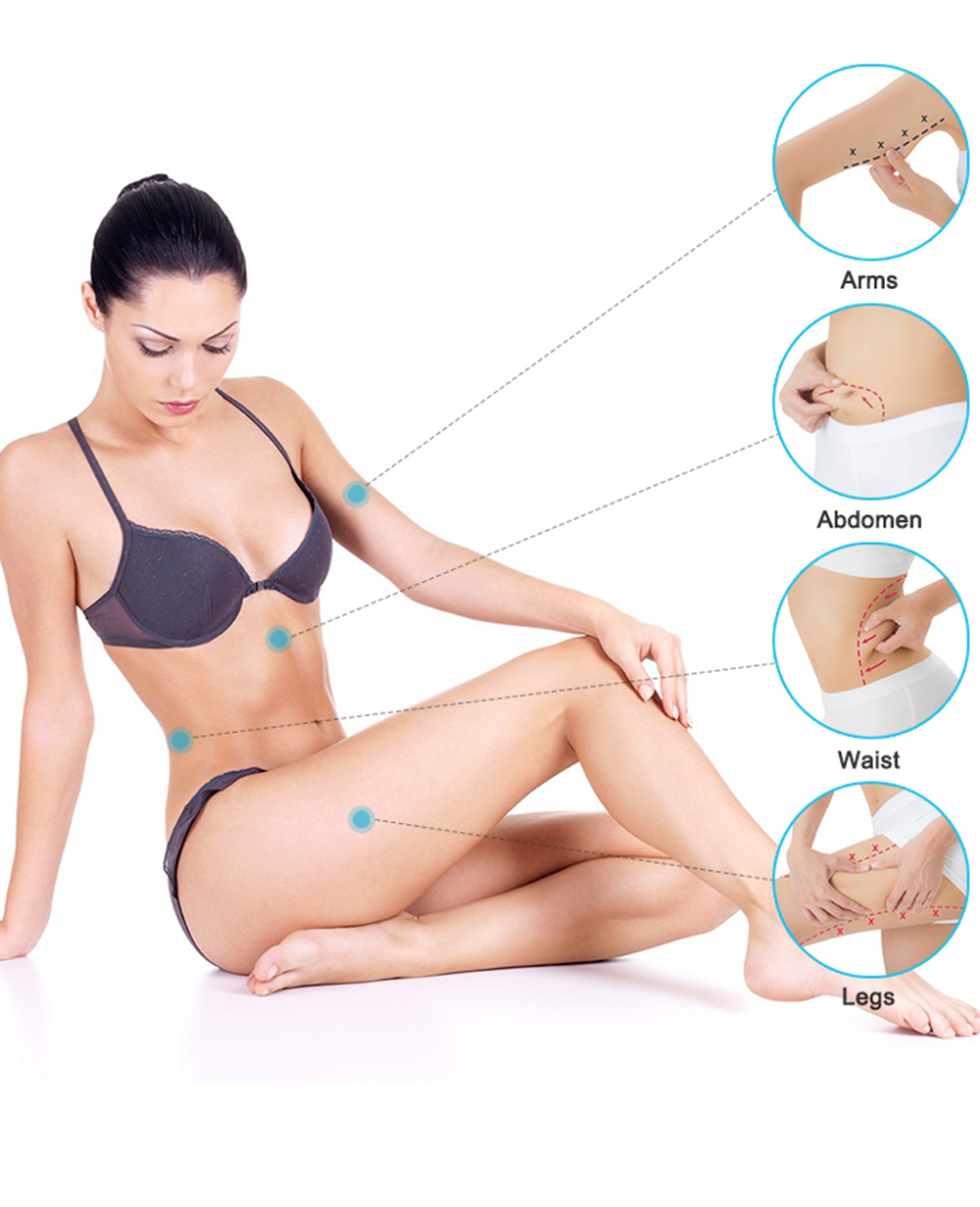 1. Reducción del tejido graso (el principio de cavitación hace que miles de burbujas de aire microscópicas rodeen las membranas de las células grasas con una frecuencia de resonancia que provoque suficiente presión para que las células grasas se rompan instantáneamente).