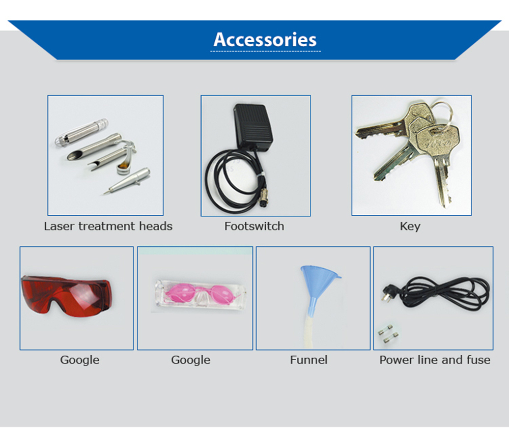 | Cabezales de tratamiento | 5 piezas (láser de co2 normal, fraccional, cabezas vaginales de 3 piezas) |