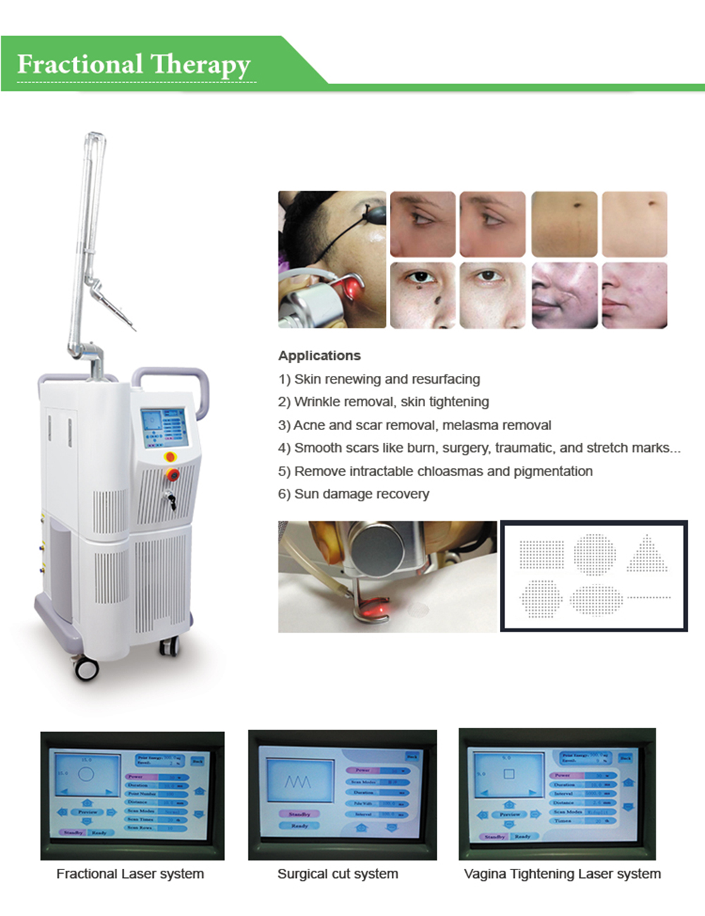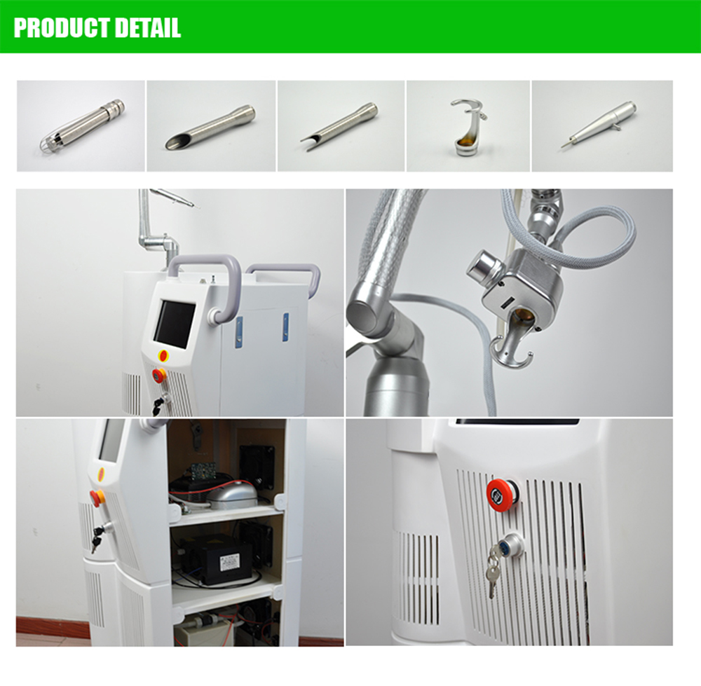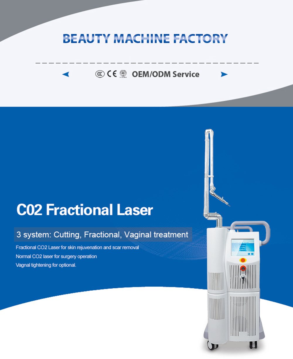 El sistema láser de CO2 fraccional es una nueva tecnología de rejuvenecimiento con láser. Dispara un rayo láser que luego se divide en varios rayos microscópicos, produciendo un pequeño punto para pelar la piel y penetrar el rayo láser en el corion. El sistema láser de CO2 fraccional ajustable dispara un rayo láser que se divide en números de rayos microscópicos, produciendo un punto diminuto o un área dañada fraccionada. Esto permite que la piel sane mucho más rápido que si se tratara toda el área.